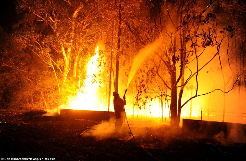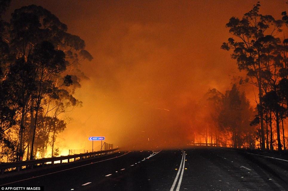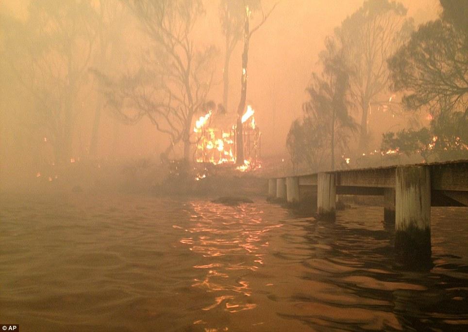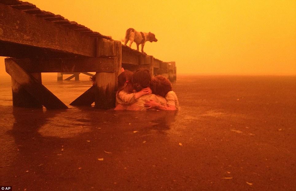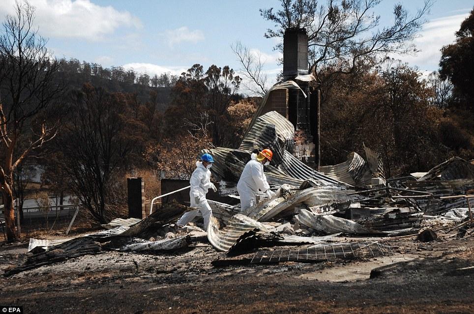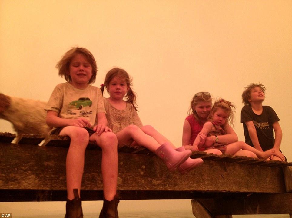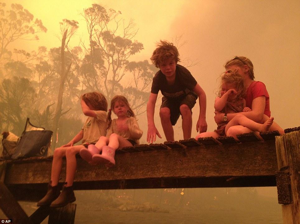 Хэт халуунаас үүдсэн гал түймэрийн аюул австраличуудыг сандаргаад байгаа билээ. Сүүлийн нэг өдөр халууны хэм буурснаар бага ч гэсэн амьсгаа авах боломж өгсөн боловч долоо хоногийн сүүлчийн өдрүүдэд эргээд хална гэсэн мэдээ гараад байна. Халууны улмаас Тасманид нэлээд хэдэн гал гарч, цөөнгүй айл орон гэрээ алдаад байна. Тасманийн Дуналли хэмээх жижиг хотын 90 гаруй айл орон гэрээ алдсаны дотор зураг дээрх Холмесын гэр бүлийнхэн ч орох оронгүй үлджээ. Гэвч хэн ч зогсоож чадаагүй түймрээс энэ зэргийн хохиролтой үлдсэндээ тэд баяртай байна. Түймэр замдаа таарсан бүхнийг галдан шатааж байгааг харсан Тим болон Тамми Холмес нар таван ачаа дагуулан ойролцоохь далайн ус руу орж амь гарчээ. Тэд усан дотор хоёр цаг хагас шахам хугацааг өнгөрүүлсэн бөгөөд нөхөр нь жижиг завь олоогүй бол усанд орж түймрээс холдсон ч хорт утаанд нь амьсгал хураах байжээ. Азаар таван ач хүүхдийнх нь заяа тэднийг ивээж, аюулаас амьд мэнд мултарч, ач нараа ээжтэй нь уулзуулж чаджээ.
