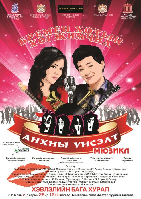 Нэгэн үе уран бүтээл туурвидаггүй унтаа хойрго хэмээн шүүмжлэлд өртөөд байсан “Улаанбаатар чуулга”-ын уран бүтээлчид Германы алдарт зохиолч ах дүү Гриммийн “Бремен хотын хөгжимчид” үлгэрээс сэдэвлэсэн “Анхны үнсэлт” дуулалт жүжгээ үзэгч түмэндээ өргөн барихад бэлэн болжээ. Бүтэц, зохион байгуулалт гээд багагүй шинэчлэл хийсэн эл чуулга энэ сарын 7, 8, 9-нд ээлжит уран бүтээлээ та бүхэнд толилуулах юм. Шинэ уран бүтээлийн бэлтгэлийг шимтэн сонирхохоор “Улаанбаатар чуулга”-ыг зорилоо.