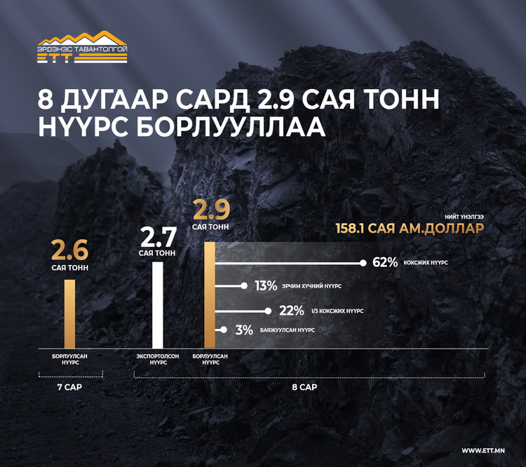 “ЭРДЭНЭС ТАВАНТОЛГОЙ” ХК НАЙМДУГААР САРД 2.9 САЯ ТОНН НҮҮРС БОРЛУУЛАВ