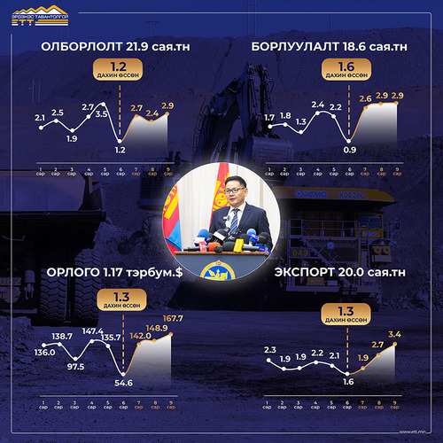 ЭРДЭНЭС ТАВАНТОЛГОЙ" ХК 49.3 САЯ АМ.ДОЛЛАРЫН ҮНИЙН ДҮН БҮХИЙ 1.1 САЯ ТОНН НҮҮРС АРИЛЖЛАА