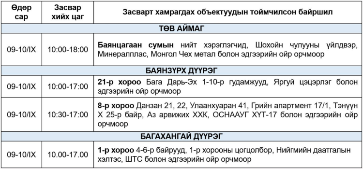 Нийслэлийн Агаар, орчны бохирдолтой тэмцэх газраас өвөлжилтийн бэлтгэл ажлын хүрээнд 2025-2026 оны халаалтын улиралд хэрэглэх сайжруулсан шахмал түлш нөөцлөх зориулалтаар агуулах түрээслэгч сонгон шалгаруулах гэж байгаа тул оролцох сонирхолтой иргэн, аж ахуй нэгж, байгууллагыг хүсэлтэй ирүүлэхийг урьж байна.