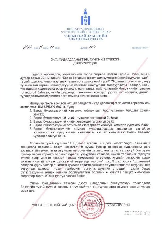 Улсын онцгой комиссын тогтоол гарсантай холбогдуулан бүх аж ахуйн нэгжүүдэд "Зохиомол хомсдол үүсгэхгүй байх, үндэслэлгүйгээр үнийн хөөрөгдөл үүсгэхгүй байх" албан шаардлагыг хүргүүлж, утсаар мэдэгдэж эхлэж байна. Зохиомол хомсдол бий болгож, үнийн хөөрөгдөл явуулсан аж ахуйн нэгжид хатуу арга хэмжээ авна. Шударга өрсөлдөөн, хэрэглэгчийн төлөө газар