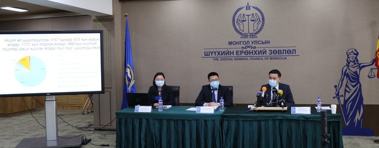 Шүүхийн ерөнхий зөвлөлөөс зохион байгуулдаг “Нээлттэй шүүх” хэвлэлийн бага хурал өнөөдөр боллоо. Хэвлэлийн бага хурлаар “Монгол Улсын шүүхийн 2020 оны 1 дүгээр улирлын шүүн таслах ажлын дүн мэдээ” сэдвээр Шүүхийн захиргаа, удирдлагын газрын дарга Ж.Сайнхишиг, тус газрын Мэдээллийн технологи, хэргийн хөдөлгөөний удирдлагын хэлтсийн референт Ц.Амарсанаа, П.Ангарагсайхан нар мэдээлэл хийсэн юм.