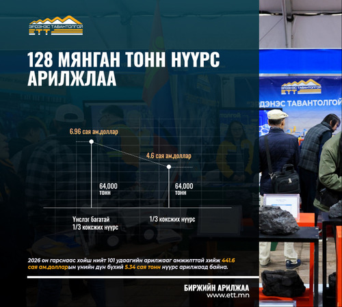 128 МЯНГАН ТОНН НҮҮРС 11.6 САЯ АМ.ДОЛЛАРООР АРИЛЖЛАА