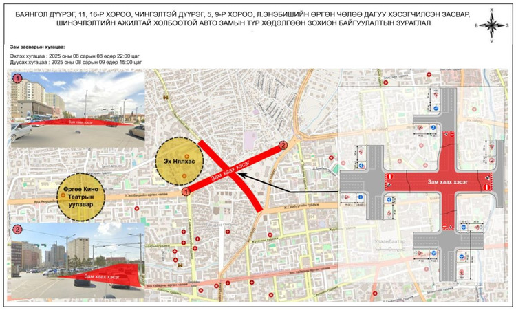Бага тойруу, Их Монголын гудамж, Чингисийн өргөн чөлөө зэрэг Улаанбаатар хотын томоохон гудамж, замууд багтаж буй. Ингэхдээ гэрлийн болон холбооны шон дээгүүрх ил кабелуудыг газар доогуур сувагчилж байгаа юм.