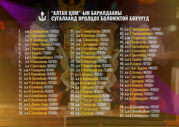 ШАТАР СОНИРХОГЧДЫН ДАШТ-ЭЭС Б.ХҮСЛЭНЗАЯА, Ц.САЙХАНЧИМЭГ НАР АЛТ, Д.ДӨЛГӨӨНЖАРГАЛ ХҮРЭЛ МЕДАЛЬ ХҮРТЛЭЭ