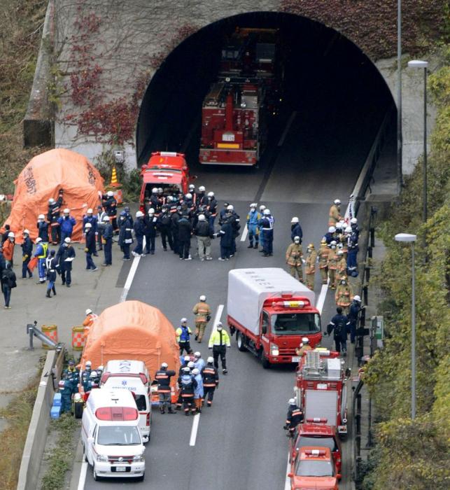 Японы нийслэл Токиогоос холгүй орших авто замын тунель нурсны улмаас есөн хүн амь үрэгдээд байна. Токиогоос баруун зүгт 80 километр зайд орших Сасаго хэмээх уг тунелийн бетонон хавтан унаж, түүгээр явсан нэлээд хэдэн автомашиныг даржээ. Аврагчид одоогоор гурван машинаас есөн хүний цогцос гаргаад байна.