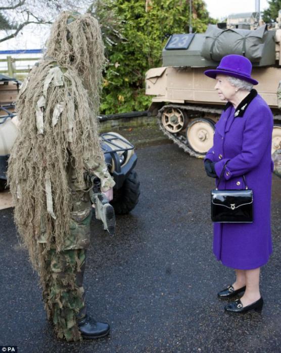 Хатан хаантай уулзах гэж байгаа хүн бүр л юу өмсдөг билээ гэж толгойгоо гашилгадаг. Харин энэ цэрэгт бол тэгж бодох сонголт ч үгүй байсан бололтой. Их Британийн хатан хаан II Элизавета явган цэргийн анги нэгтгэлийн үйл ажиллагаатай танилцаж явахдаа энэ цэргийг хараад багагүй гайхаж цочирдсон нь илт ээ.