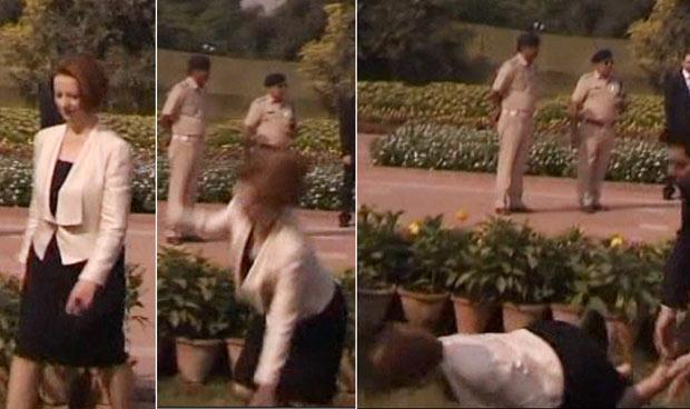 Хэт өндөр өсгийтэй гутал хүнд сайн нөлөө үзүүлдэггүй тухай эмч, мэргэжилтнүүд олон ярьдаг. Энэтхэгт айлчлал хийж байгаа Австралийн Ерөнхий сайд Жулия Гиллард үүнийг биеэр мэдэрсэн байна. Тэрээр Махатма Гандийн дурсгалын цогцолборыг үзэхээр ирэхдээ өндөр өсгийтэй гутал өмссөн байв. Ингээд хэд алхтал тэнцвэрээ алдан унаж орхиж.